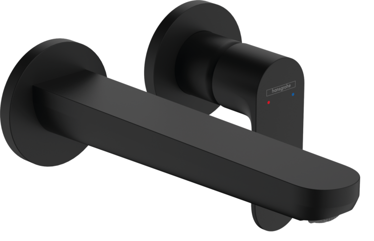 Смеситель для раковины, Hansgrohe, Rebris S, тип открывания воды-однорычажный, тип регулирования воды-керамический картридж, отверстия для монтажа-2, вынос излива, мм-200, внутренняя часть-необходимо заказать, регулируемое ограничение температуры, подходит для проточных водонагревателей, с возможностью размещения рукоятки справа или слева, цвет-черный матовый Смеситель для раковины, Hansgrohe, Rebris S, цвет-черный матовый