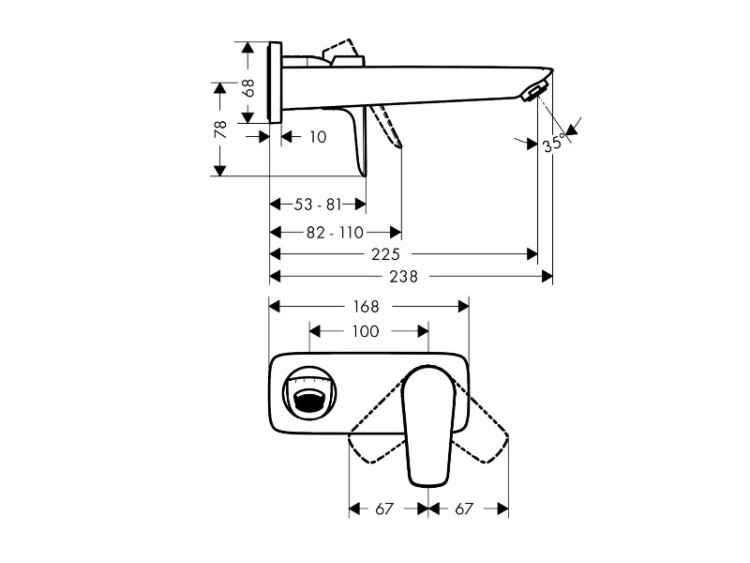 Смеситель для раковины, Hansgrohe, Talis E, тип открывания воды-однорычажный, тип регулирования воды-керамический узел смешивания, тип установки-встраиваемый, вынос излива, мм-225, внутренняя часть-необходимо заказать, цвет-черный матовый, сливной набор без опции перекрытия стока, материал сливного набора-металл, с возможностью размещения рукоятки справа или слева Смеситель для раковины, Hansgrohe, Talis E, цвет-черный матовый