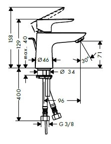 Смеситель для раковины, Hansgrohe, Talis E, тип открывания воды-однорычажный, тип регулирования воды-керамический узел смешивания, отверстия для монтажа-1, высота, мм-129, вынос излива, мм-96, цвет-хром Смеситель для раковины, Hansgrohe, Talis E, цвет-хром