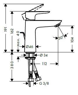 Смеситель для раковины, Hansgrohe, Talis E, тип открывания воды-однорычажный, тип регулирования воды-керамический узел смешивания, отверстия для монтажа-1, высота, мм-162, вынос излива, мм-112, цвет-хром Смеситель для раковины, Hansgrohe, Talis E, цвет-хром