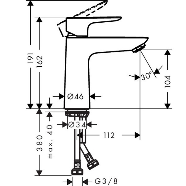 Смеситель для раковины, Hansgrohe, Talis E, тип открывания воды-однорычажный, отверстия для монтажа-1, высота, мм-162, вынос излива, мм-112, донный клапан-есть, цвет-хром, со сливным клапаном push-open Смеситель для раковины, Hansgrohe, Talis E, цвет-хром