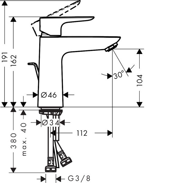 Смеситель для раковины, Hansgrohe, Talis E, тип открывания воды-однорычажный, тип регулирования воды-керамический узел смешивания, отверстия для монтажа-1, высота, мм-162, вынос излива, мм-112, донный клапан-есть, цвет-хром, регулируемое ограничение температуры Смеситель для раковины, Hansgrohe, Talis E, цвет-хром