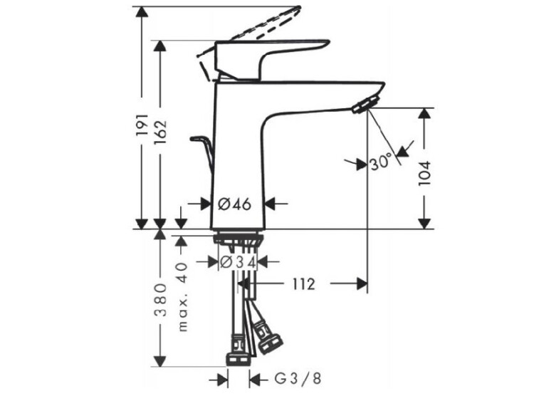 Смеситель для раковины, Hansgrohe, Talis E, тип открывания воды-однорычажный, тип регулирования воды-керамический узел смешивания, отверстия для монтажа-1, высота, мм-162, вынос излива, мм-112, донный клапан-есть, стандарт подвода воды-3/8", цвет-полированное золото, материал сливного набора-металл Смеситель для раковины, Hansgrohe, Talis E, цвет-полированное золото