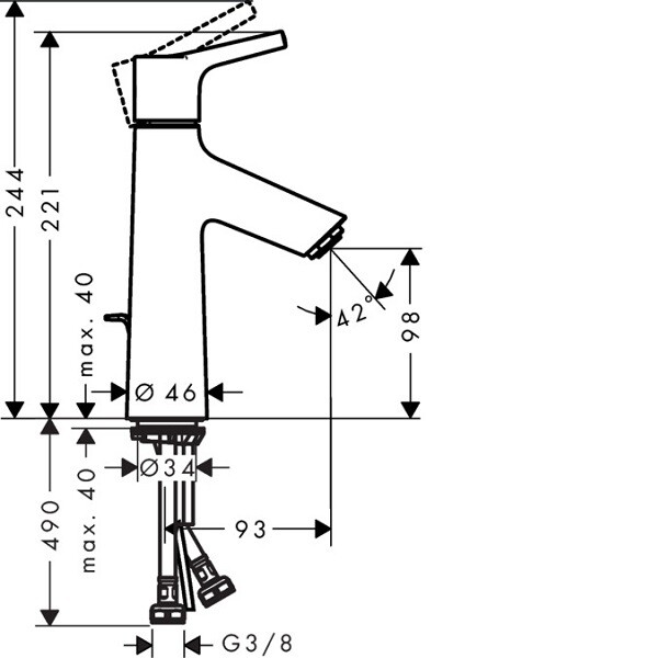 Смеситель для раковины, Hansgrohe, Talis S, тип открывания воды-однорычажный, отверстия для монтажа-1, высота, мм-221, вынос излива, мм-93, донный клапан-есть, цвет-хром Смеситель для раковины, Hansgrohe, Talis S, цвет-хром