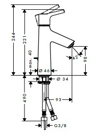 Смеситель для раковины, Hansgrohe, Talis S, тип открывания воды-однорычажный, тип регулирования воды-керамический узел смешивания, отверстия для монтажа-1, высота, мм-221, вынос излива, мм-93, донный клапан-есть, цвет-хром Смеситель для раковины, Hansgrohe, Talis S, цвет-хром