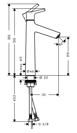 Смеситель для раковины, Hansgrohe, Talis S, тип открывания воды-однорычажный, тип регулирования воды-керамический узел смешивания, отверстия для монтажа-1, высота, мм-332, вынос излива, мм-131, донный клапан-есть, тип подводки-гибкая, цвет-хром Смеситель для раковины, Hansgrohe, Talis S, цвет-хром