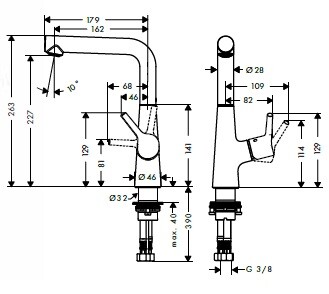 Смеситель для раковины, Hansgrohe, Talis S, тип открывания воды-однорычажный, тип регулирования воды-керамический узел смешивания, отверстия для монтажа-1, высота, мм-263, вынос излива, мм-162, донный клапан-есть, цвет-хром Смеситель для раковины, Hansgrohe, Talis S, цвет-хром