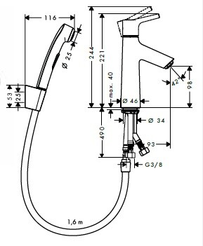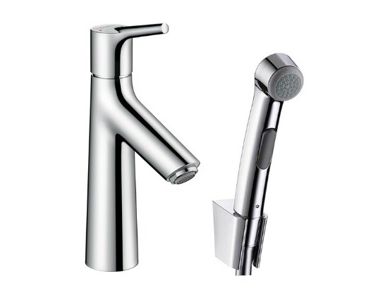 Смеситель для раковины, Hansgrohe, Talis S, тип открывания воды-однорычажный, тип регулирования воды-керамический картридж, тип установки-на раковину, высота, мм-221, вынос излива, мм-93, комплектация-гигиенический душ, шланг-1600 мм, держатель, цвет-хром Смеситель для раковины, Hansgrohe, Talis S, цвет-хром