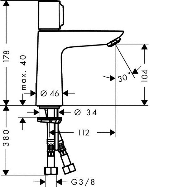 Смеситель для раковины, Hansgrohe, Talis Select E, тип открывания воды-однорычажный, отверстия для монтажа-1, высота, мм-178, вынос излива, мм-112, цвет-хром, без сливного гарнитура Смеситель для раковины, Hansgrohe, Talis Select E, цвет-хром