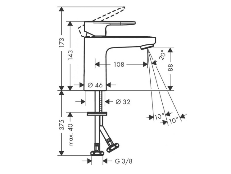 Смеситель для раковины, Hansgrohe, Vernis Blend, тип открывания воды-однорычажный, тип регулирования воды-керамический картридж, монтаж-на раковину/столешницу, отверстия для монтажа-1, высота, мм-143, вынос излива, мм-108, тип подводки-гибкая, стандарт подвода воды-3/8", цвет-хром Смеситель для раковины, Hansgrohe, Vernis Blend, цвет-хром