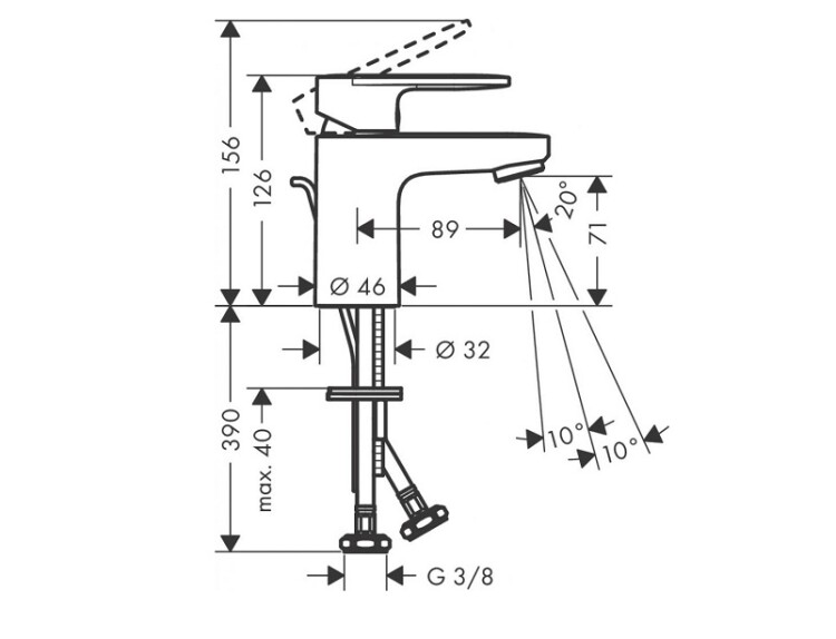 Смеситель для раковины, Hansgrohe, Vernis Blend, тип открывания воды-однорычажный, тип регулирования воды-керамический картридж, монтаж-на раковину/столешницу, отверстия для монтажа-1, высота, мм-126, вынос излива, мм-89, донный клапан-есть, тип подводки-гибкая, стандарт подвода воды-3/8", цвет-хром Смеситель для раковины, Hansgrohe, Vernis Blend, цвет-хром