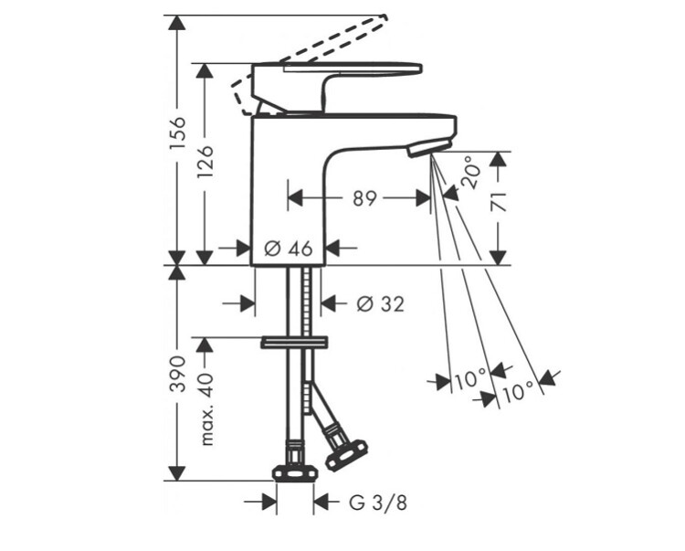 Смеситель для раковины, Hansgrohe, Vernis Blend, тип открывания воды-рычажный, тип регулирования воды-керамический картридж, монтаж-на раковину/столешницу, отверстия для монтажа-1, высота, мм-126, вынос излива, мм-89, тип излива-неподвижный, тип подводки-гибкая, стандарт подвода воды-3/8", цвет-хром Смеситель для раковины, Hansgrohe, Vernis Blend, цвет-хром