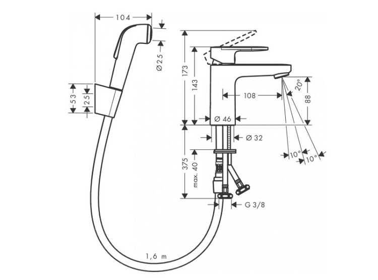 Смеситель для раковины, Hansgrohe, Vernis Blend, тип открывания воды-однорычажный, тип регулирования воды-керамический картридж, отверстия для монтажа-2, высота, мм-143, вынос излива, мм-108, тип излива-неподвижный, гигиенический душ-бидетте, держатель для душа, шланг для душа, тип подводки-гибкая, стандарт подвода воды-3/8", цвет-хром Смеситель для раковины, Hansgrohe, Vernis Blend, цвет-хром, с гигиеническим душем
