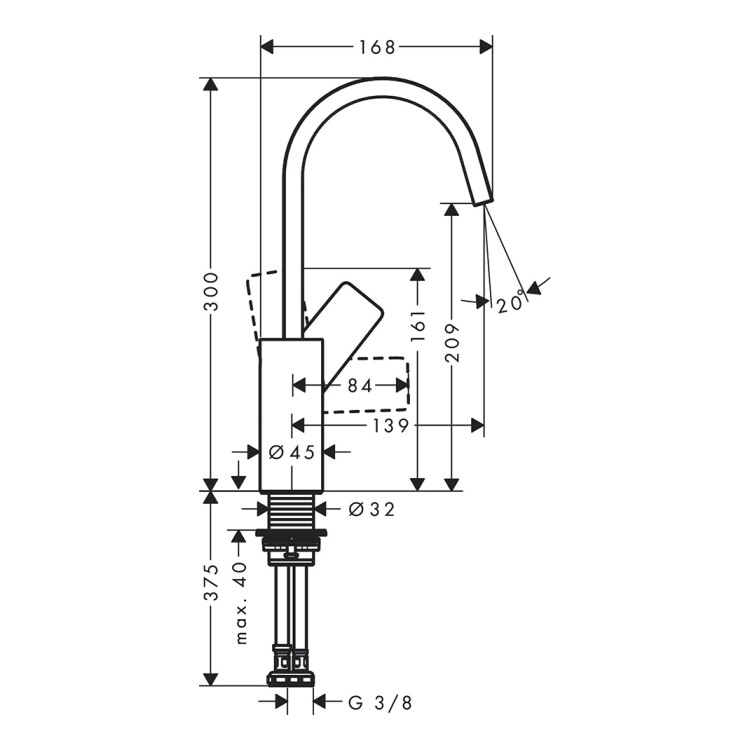 Смеситель для раковины, Hansgrohe, Vivenis, тип открывания воды-однорычажный, тип регулирования воды-керамический картридж, монтаж-на раковину/столешницу, отверстия для монтажа-1, высота, мм-300, вынос излива, мм-139, тип излива-поворотный, донный клапан-отсутствует, тип подводки-гибкая, стандарт подвода воды-3/8", цвет-белый матовый Смеситель для раковины, Hansgrohe, Vivenis, цвет-белый матовый