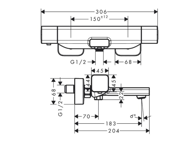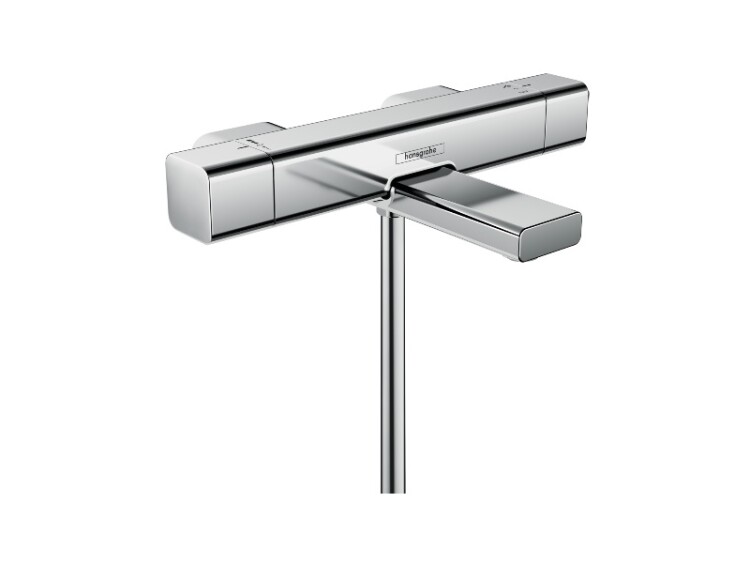Смеситель для ванны и душа, Hansgrohe, Ecostat E, тип регулирования воды-термостатический картридж, монтаж-вертикальный (настенный), отверстия для монтажа-2, вынос излива, мм-183, тип излива-неподвижный, цвет-хром, 2 потребителя, предохранительный ограничитель при 40°C, регулируемое ограничение температуры, клапан обратного тока воды, с шумопоглотителем, грязеулавливающий фильтр входит в комплект поставки Смеситель для ванны и душа, Hansgrohe, Ecostat E, цвет-хром