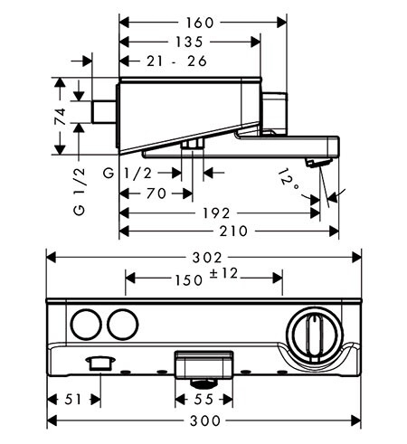 Смеситель для ванны и душа, Hansgrohe, Ecostat Select, тип регулирования воды-термостатический картридж, тип установки-настенный, комплектация-, цвет-хром Смеситель для ванны и душа, Hansgrohe, Ecostat Select, цвет-хром
