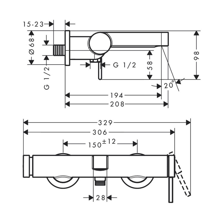 Смеситель для ванны и душа, Hansgrohe, Finoris, тип открывания воды-однорычажный, тип регулирования воды-керамический картридж, монтаж-настенный, отверстия для монтажа-2, вынос излива, мм-194, тип излива-неподвижный, цвет-белый матовый Смеситель для ванны и душа, Hansgrohe, Finoris, цвет-белый матовый