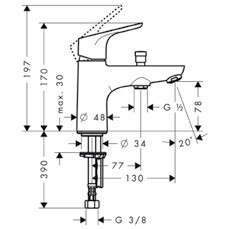 Смеситель для ванны и душа, Hansgrohe, Focus, тип открывания воды-однорычажный, тип регулирования воды-керамический узел смешивания, отверстия для монтажа-1, вынос излива, мм-130, комплектация-переключатель вакуумного типа, цвет-хром Смеситель для ванны и душа, Hansgrohe, Focus, цвет-хром