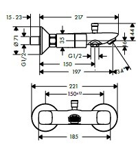 Смеситель для ванны и душа, Hansgrohe, Logis, тип открывания воды-двухвентильный, тип регулирования воды-керамический вентиль, тип установки-настенный, отверстия для монтажа-2, вынос излива, мм-197, комплектация-с шумопоглотителем, цвет-хром Смеситель для ванны и душа, Hansgrohe, Logis, цвет-хром