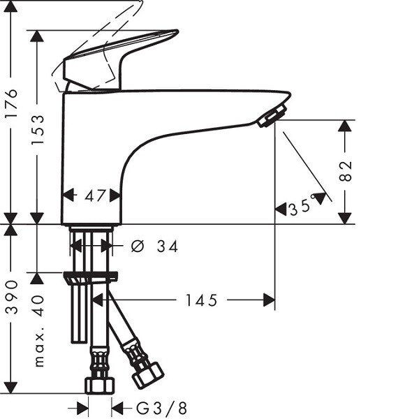 Смеситель для ванны и душа, Hansgrohe, Logis, тип открывания воды-однорычажный, тип регулирования воды-керамический узел смешивания, отверстия для монтажа-1, вынос излива, мм-145, цвет-хром Смеситель для ванны и душа, Hansgrohe, Logis, цвет-хром