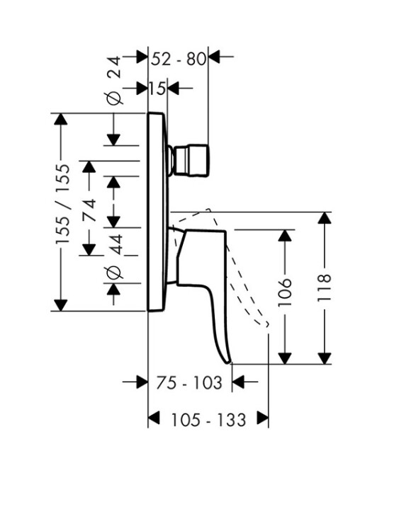 Смеситель для душа, Hansgrohe, Metris, тип открывания воды-однорычажный, тип регулирования воды-керамический узел смешивания, тип установки-настенный, комплектация-ручка, гильза, розетка, функциональный блок, цвет-хром, переключатель вакуумного типа, обратный клапан, регулируемый ограничитель температуры, шумопоглотитель, встроенная защитная комбинация Смеситель для душа, Hansgrohe, Metris, цвет-хром
