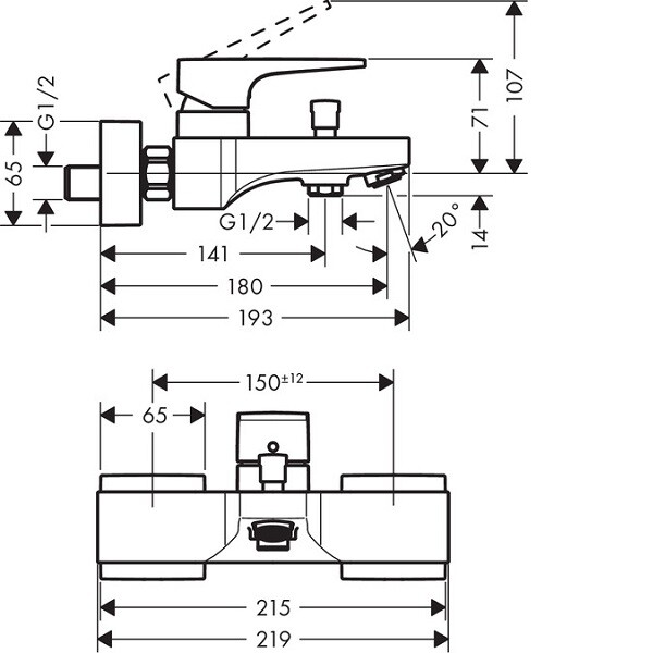 Смеситель для ванны и душа, Hansgrohe, Metropol, тип открывания воды-однорычажный, тип установки-настенный, вынос излива, мм-180, комплектация-с рычаговой рукояткой, цвет-хром Смеситель для ванны и душа, Hansgrohe, Metropol, цвет-хром