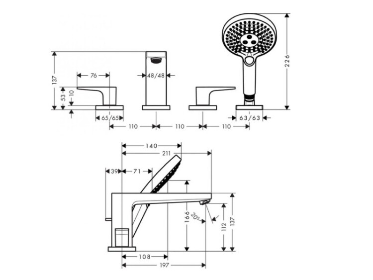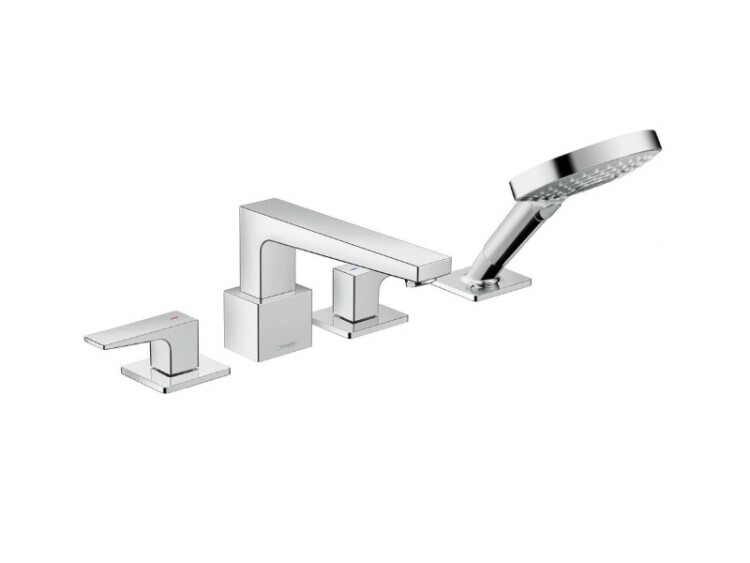 Смеситель для ванны и душа, Hansgrohe, Metropol, тип открывания воды-двухрычажный, тип регулирования воды-керамический узел смешивания, тип установки-на край ванны, отверстия для монтажа-4, вынос излива, мм-197, внутренняя часть-необходимо заказать, цвет-хром, в комплекте-встраиваемый держатель ручного душа,вытяжной ручной душ, форма-круглая, размер душевого диска,мм-125, тип струи ручного душа: Rain, RainAir, WhirlAir Смеситель для ванны и душа, Hansgrohe, Metropol, цвет-хром