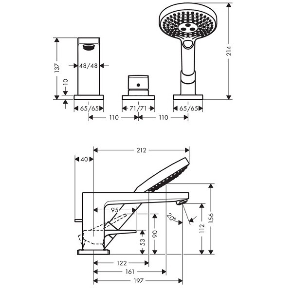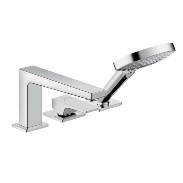 Смеситель для ванны и душа, Hansgrohe, Metropol, тип регулирования воды-керамический картридж, тип установки-на край ванны, отверстия для монтажа-3, вынос излива, мм-196, комплектация-переключатель, ручной душ, внутренняя часть-необходимо заказать, цвет-хром, регулируемое ограничение температуры Смеситель для ванны и душа, Hansgrohe, Metropol, цвет-хром