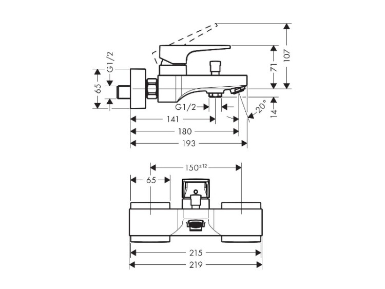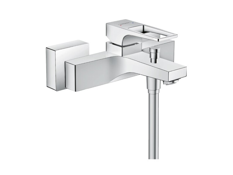 Смеситель для ванны и душа, Hansgrohe, Metropol, тип открывания воды-однорычажный, тип регулирования воды-керамический узел смешивания, тип установки-настенный, отверстия для монтажа-2, вынос излива, мм-180, вид ручки-петля, цвет-хром, регулируемое ограничение температуры, с переключателем вакуумного типа, с шумопоглотителем Смеситель для ванны и душа, Hansgrohe, Metropol, цвет-хром