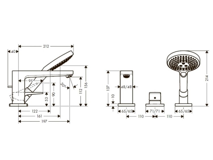 Смеситель для ванны и душа, Hansgrohe, Metropol, тип регулирования воды-керамический узел смешивания, тип установки-на край ванны, отверстия для монтажа-3, вынос излива, мм-197, внутренняя часть-необходимо заказать, цвет-хром, вытяжной ручной душ, форма душевой лейкти-круглая, ,максимальное расстояние, на которое вытягивается ручной душ,мм-1100, встроенный держатель душа Смеситель для ванны и душа, Hansgrohe, Metropol, цвет-хром