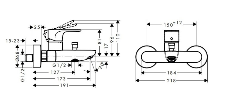 Смеситель для ванны и душа, Hansgrohe, Rebris S, 2 режима расхода воды, тип открывания воды-однорычажный, тип регулирования воды-керамический картридж, монтаж-настенный, отверстия для монтажа-2, вынос излива, мм-173, регулируемое ограничение температуры, дивертер с переключателем вакуумного типа, подходит для проточных водонагревателей, 2 режима расхода воды, цвет-черный матовый Смеситель для ванны и душа, Hansgrohe, Rebris S, цвет-черный матовый