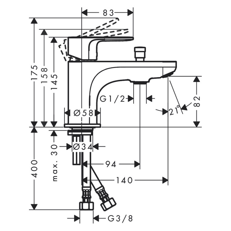 Смеситель для ванны и душа, Hansgrohe, Rebris S,Monotrou, с 2 режимами расхода воды, тип открывания воды-однорычажный, тип регулирования воды-керамический картридж, монтаж-на борт ванны, отверстия для монтажа-1, вынос излива, мм-140, тип излива-неподвижный, цвет-хром Смеситель для ванны и душа, Hansgrohe, Rebris S, Monotrou, цвет-хром