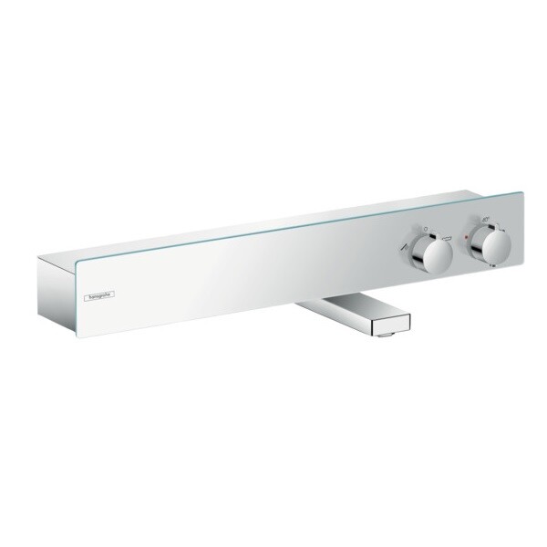 Смеситель для ванны и душа, Hansgrohe, ShowerTablet, тип регулирования воды-термостатический картридж, тип установки-настенный, вынос излива, мм-195, комплектация-с шумопоглотителем, цвет-хром, 2 потребителя, предохранительный ограничитель при 40° C, регулируемое ограничение температуры, поверхность полочки: анодированный алюминий, с изолированной подачей воды, клапан обратного тока воды, грязеулавливающий фильтр Смеситель для ванны и душа, Hansgrohe, ShowerTablet, цвет-хром