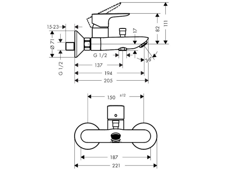 Смеситель для ванны и душа, Hansgrohe, Talis E, тип открывания воды-однорычажный, тип регулирования воды-керамический узел смешивания, тип установки-настенный, отверстия для монтажа-2, вынос излива, мм-194, тип излива-неподвижный, цвет-белый матовый, регулируемое ограничение температуры, с переключателем вакуумного типа, клапан обратного тока воды, с шумопоглотителем Смеситель для ванны и душа, Hansgrohe, Talis E, цвет-белый матовый