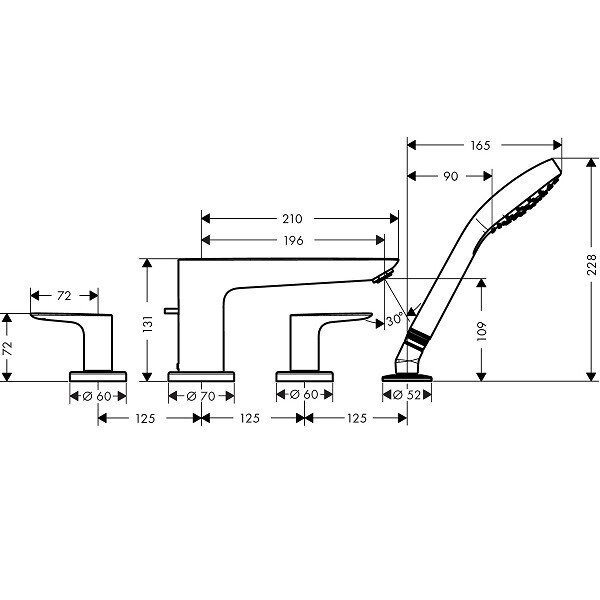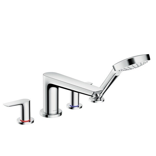 Смеситель для ванны и душа, Hansgrohe, Talis E, тип установки-на борт ванны, отверстия для монтажа-4, вынос излива, мм-196, тип излива-неподвижный, комплектация-излив на ванну с переключателем, рукоятки, внутренняя часть-необходимо заказать, цвет-хром, встроенный держатель душа Смеситель для ванны и душа, Hansgrohe, Talis E, цвет-хром