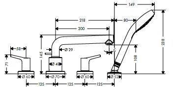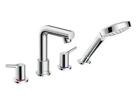 Смеситель для ванны и душа, Hansgrohe, Talis S, тип установки-на борт ванны, отверстия для монтажа-4, вынос излива, мм-200, комплектация-переключатель, ручной душ, встроенный держатель душа, внутренняя часть-необходимо заказать, цвет-хром Смеситель для ванны и душа, Hansgrohe, Talis S, цвет-хром