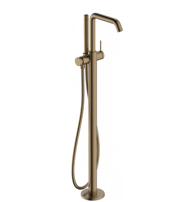 Смеситель для ванны и душа, Hansgrohe, Tecturis S, тип открывания воды-однорычажный, тип регулирования воды-керамический картридж, монтаж-напольный, отверстия для монтажа-1, вынос излива, мм-194, ручной душ-в комплекте, цвет-бронза шлифованная Смеситель для ванны и душа, Hansgrohe, Tecturis S, цвет-бронза шлифованная