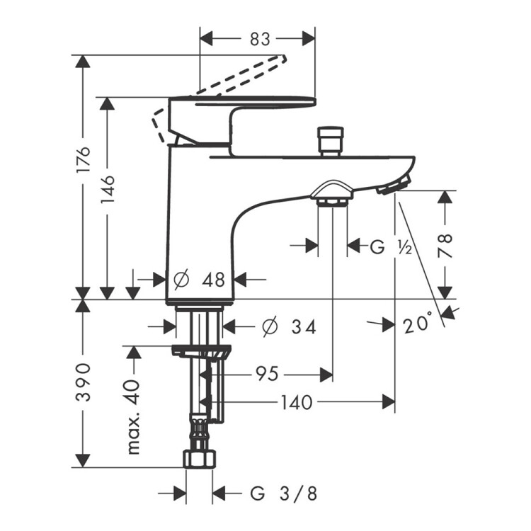 Смеситель для ванны и душа, Hansgrohe, Vernis Blend, тип открывания воды-однорычажный, тип регулирования воды-керамический картридж, монтаж-на борт ванны, отверстия для монтажа-1, вынос излива, мм-140, тип излива-неподвижный, цвет-хром Смеситель для ванны и душа, Hansgrohe, Vernis Blend, цвет-хром
