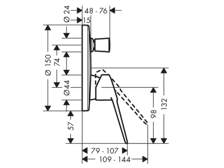Смеситель для ванны и душа, Hansgrohe, Novus Loop, тип открывания воды-однорычажный, тип установки-встраиваемый, отверстия для монтажа-1, комплектация-переключатель, внутренняя часть-необходимо заказать, цвет-хром Смеситель для ванны, Hansgrohe, Novus Loop, цвет-хром