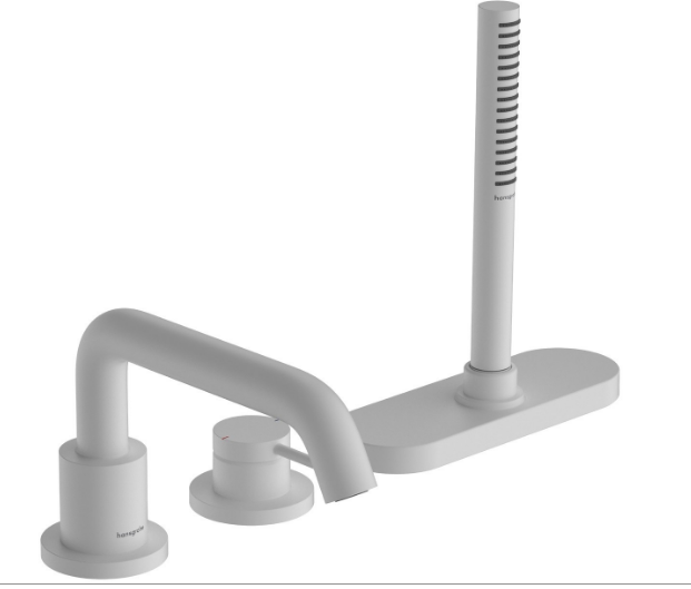 Смеситель для ванны, Hansgrohe, Tecturis S, тип открывания воды-однорычажный, тип регулирования воды-керамический картридж, монтаж-на борт ванны, отверстия для монтажа-3, вынос излива, мм-194, в комплекте-ручной душ, держатель для душа, душевой шланг, короб для шланга, количество режимов ручного душа-2, тип струи ручного душа-Rain, MonoRain, внутренняя часть-необходимо заказать, sBox для тихого, плавного и безопасного управления шлангом, цвет-белый матовый Смеситель для ванны, Hansgrohe, Tecturis S, цвет-белый матовый