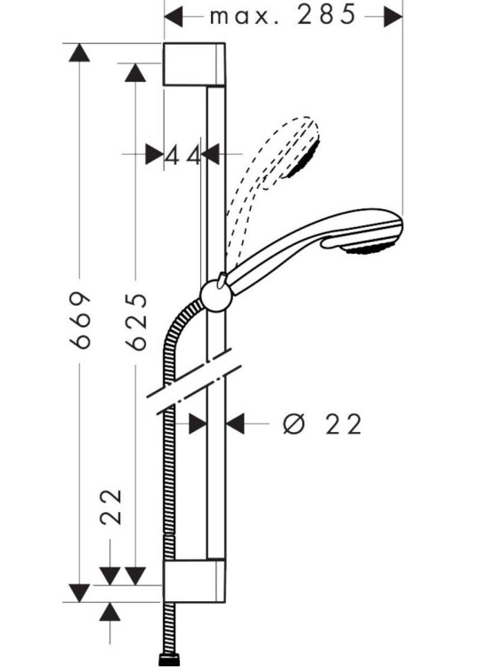 Душевой гарнитур, Hansgrohe, Crometta, размер штанги, мм-650, размер шланга, мм-1600, размер душевого диска, мм-85, форма лейки-круглая, количество режимов-2, тип струи-обычная, Vario, переключение типов струи с помощью вращающегося душевого диска, держатель для ручного душа регулируется, цвет-хром Душевой гарнитур, Hansgrohe, Crometta, 85, цвет-хром
