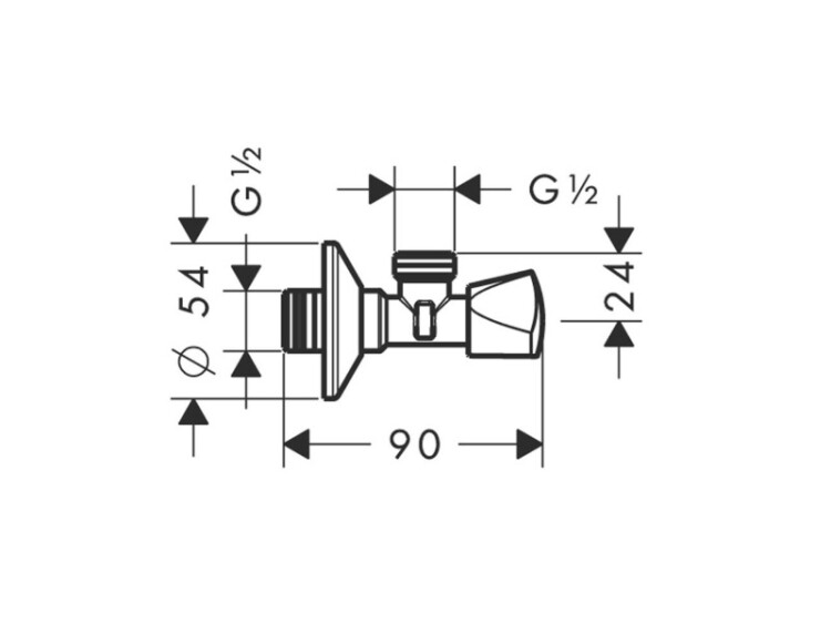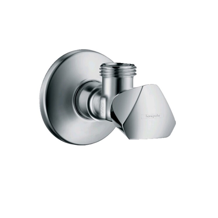 Вентиль, Hansgrohe, тип вентиля-угловой, 1/2", тип установки-настенный, цвет-хром, материал-латунь, материал рукоятки и розетки-пластик Вентиль, Hansgrohe, 1/2", цвет-хром