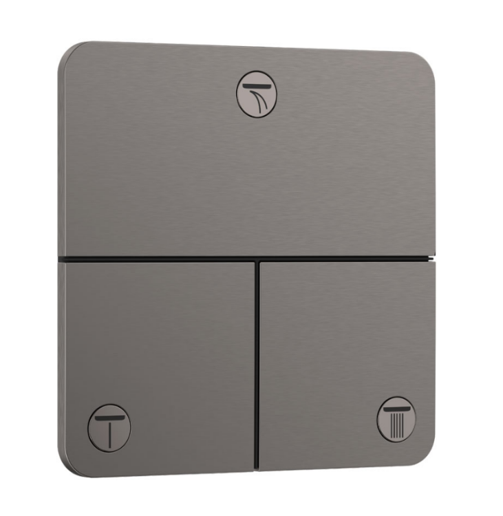 Вентиль, Hansgrohe, ShowerSelect Comfort Q, переключающий (дивертор), 1/2", для 3-х потребителей, тип установки-настенный встраиваемый, внутренняя часть-необходимо заказать, цвет-хром черный шлифованный Вентиль, Hansgrohe, ShowerSelect Comfort Q, переключающий (дивертор), 1/2", для 3-х потребителей, цвет-хром черный шлифованный