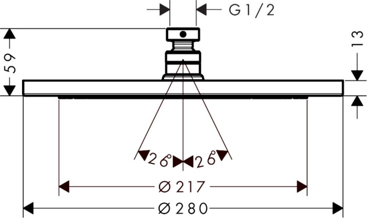 Верхний душ, Hansgrohe, Croma, тип установки-настенный, потолочный, размер душевого диска, мм-280*280, форма-круглая, количество режимов-1, тип струи-RainAir, держатель-необходимо заказать, цвет-полированное золото Верхний душ, Hansgrohe, Croma, 280*280, цвет-полированное золото