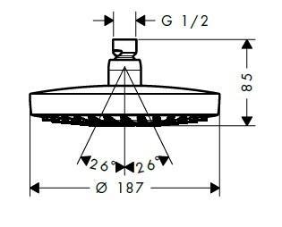 Верхний душ, Hansgrohe, Croma Select S, тип установки-настенный, потолочный, размер душевого диска, мм-180*180, форма-круглая, количество режимов-2, тип струи-Rain, Intense Rain, держатель-необходимо заказать, цвет-хром Верхний душ, Hansgrohe, Croma Select S, 180*180, цвет-хром