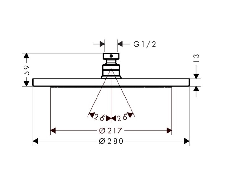 Верхний душ, Hansgrohe, Croma, тип установки-настенный, потолочный, ширина, мм-280, глубина, мм-280, высота, мм-59, форма-круглая, количество режимов-1, тип струи-RainAir, держатель-необходимо заказать, цвет-хром, полностью хромированный душевой диск, съемный душевой диск для очистки Верхний душ, Hansgrohe, Croma, шгв 280*280*59, цвет-хром