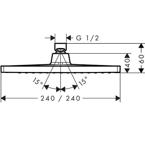Верхний душ, Hansgrohe, Crometta E, тип установки-потолочный, ширина, мм-240, глубина, мм-240, высота, мм-60, форма-прямоугольная, количество режимов-1, тип струи-Rain, цвет-хром Верхний душ, Hansgrohe, Crometta E, шгв 240*240*60, цвет-хром