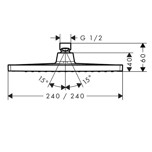 Верхний душ, Hansgrohe, Crometta E, тип установки-настенный, потолочный, ширина, мм-240, глубина, мм-240, высота, мм-60, форма-квадратная, количество режимов-1, тип струи-Rain, цвет-хром Верхний душ, Hansgrohe, Crometta E, шгв 240*240*60, цвет-хром