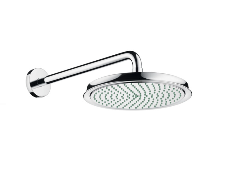 Верхний душ, Hansgrohe, Raindance Classic, тип установки-настенный, ширина, мм-240, глубина, мм-240, высота, мм-130, форма-круглая, количество режимов-1, тип струи-RainAir, держатель-есть, размер держателя-390, цвет-хром Верхний душ, Hansgrohe, Raindance Classic, шгв 240*240*130, цвет-хром