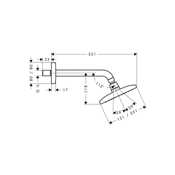 Верхний душ, Hansgrohe, Raindance E, тип установки-настенный, ширина, мм-250, глубина, мм-330, высота, мм-118, форма-прямоугольная, количество режимов-1, тип струи-RainAir, держатель-есть, размер держателя-223, цвет-хром Верхний душ, Hansgrohe, Raindance E, шгв 250*330*118, цвет-хром